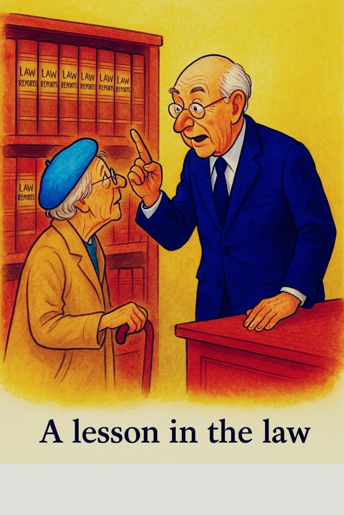 “Yer see all them books oop there! They’re all law reports. Each book contains 30 or 40 cases.
